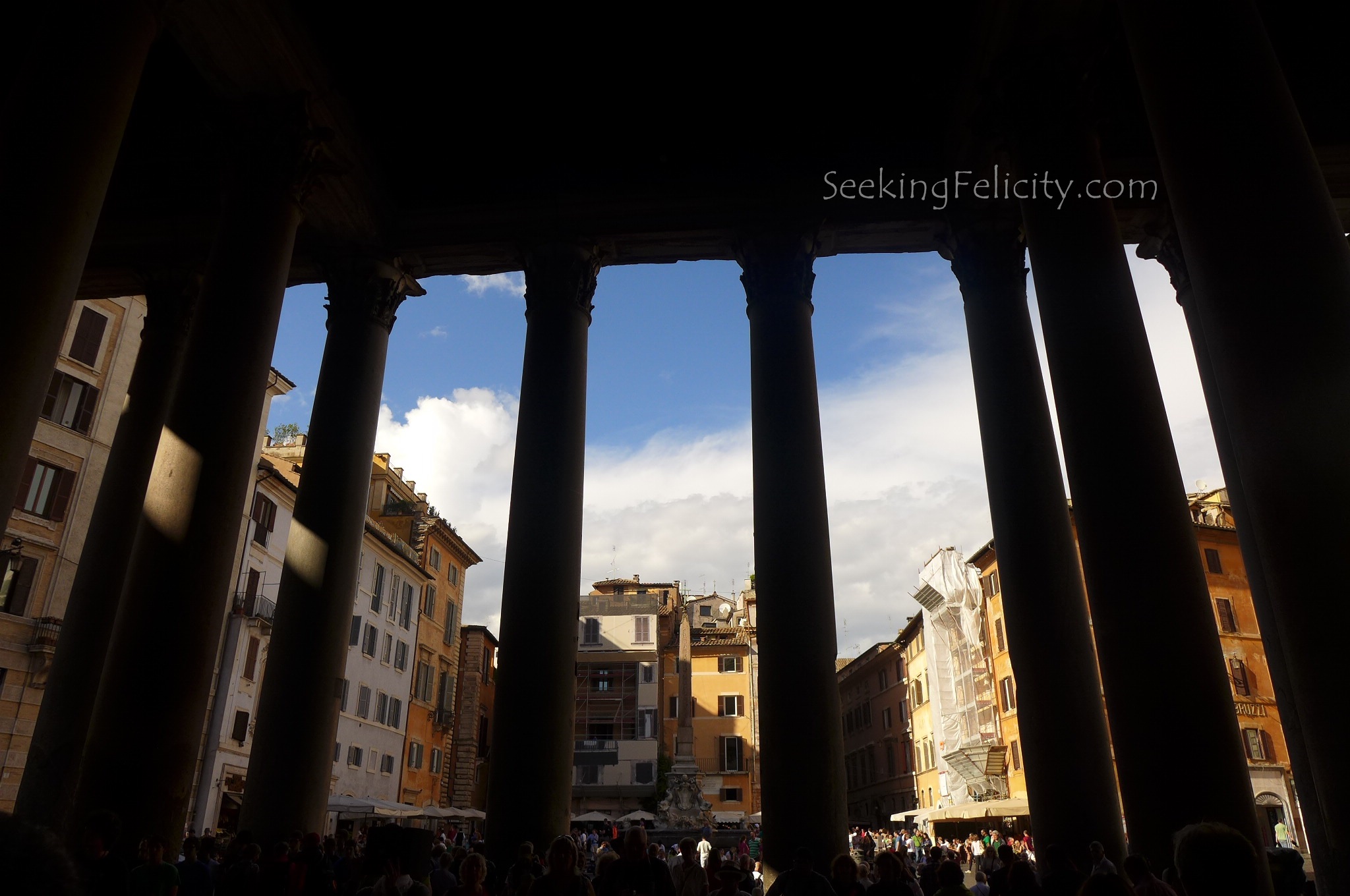 View of the Pantheon from the inside looking out into the piazza.