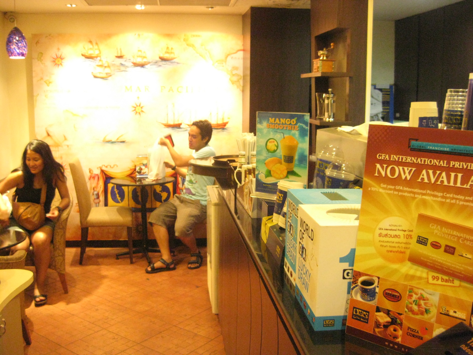 I made online reservation a month before – while I was booking for everything else. We arrived around 6pm to catch the sunset. The restaurant is located on the 61st floor. A lift took us up the 59th floor and we had to walk the rest of the way. There was an ongoing private party in the other half of the restaurant so it was kinda noisy too -a drunken kind of noise that is. The view from up there was pretty nice. I found it pretty windy and had to tie back my hair in a ponytail or else, my hair would keep whipping my face -_-. He found the breeze perfect!